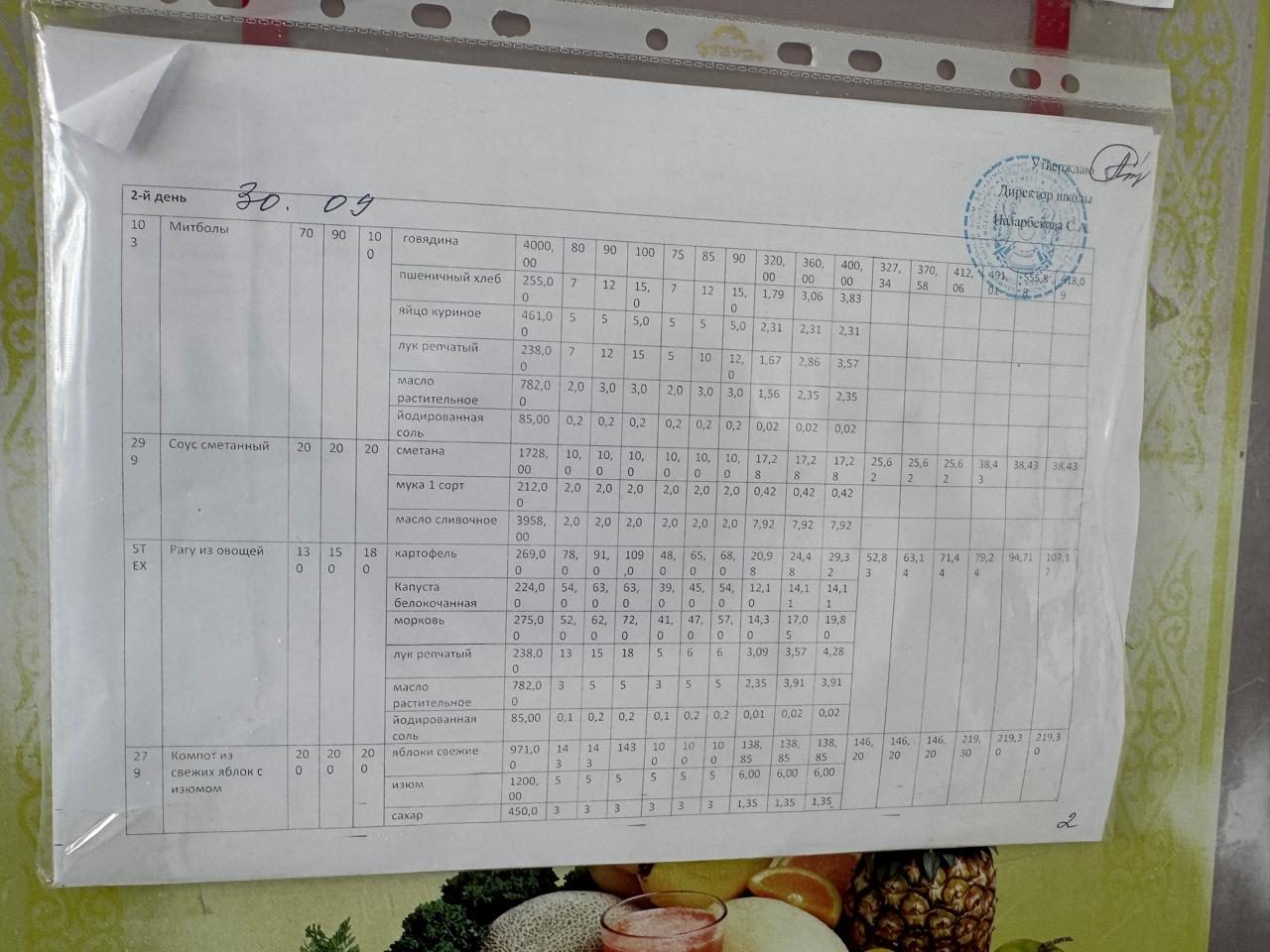 Ас мәзірі 30.09.2025
