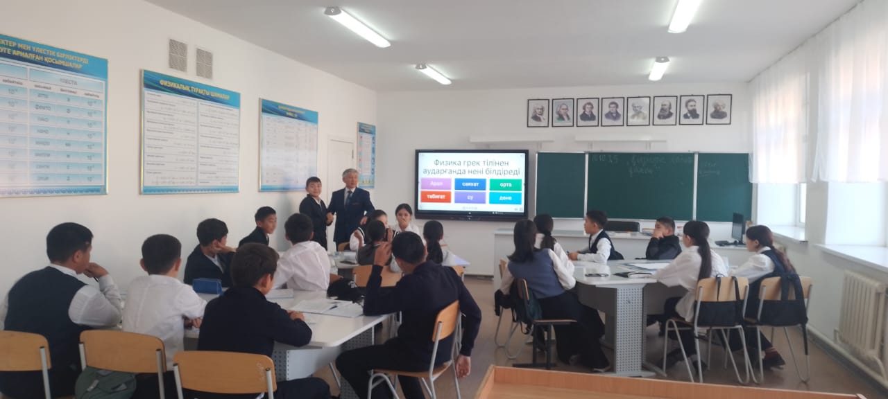 2025 жылдың 10 қазан күні жаратылыстану - математикалық пәндер онкүндігі аясында 8 сынып оқушылары арасыда физика пәнінен «Қызықты калейдоскоп» физикалық ойыны өтті.